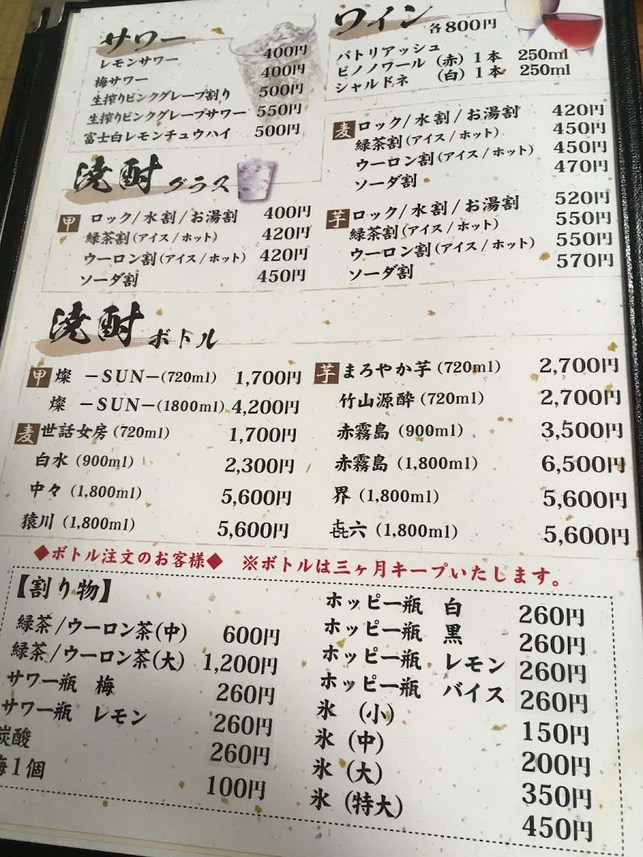 The drink list is just as impressive, with 日本酒 (Sake) and 角ハイボール (Kaku Highball) offering refreshing and traditional beverages to complement the meal.